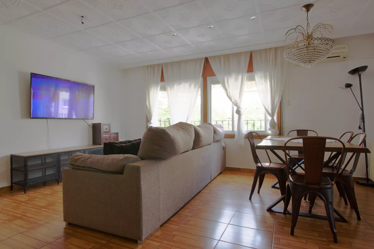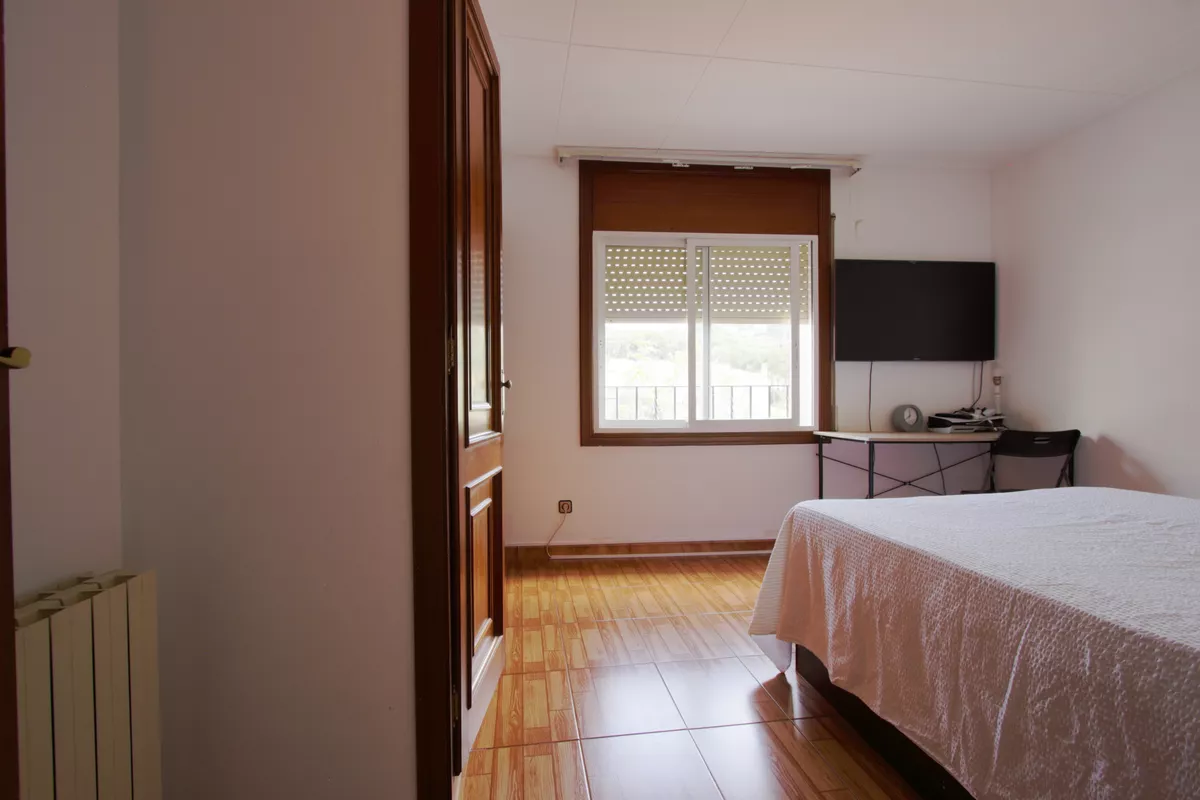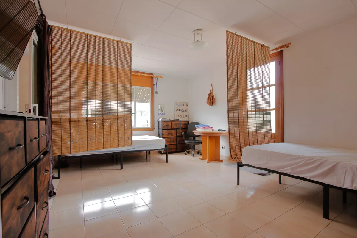 Entre els carrers Tarragona i Còrdova, tens un segon pis d’altura, cantoner i exterior, de 100 m2 construïts i 90 m2 útils, amb tres habitacions dobles i armaris, una sala menjador gran amb llar de foc, cuina tancada molt gran i dos banys complets.